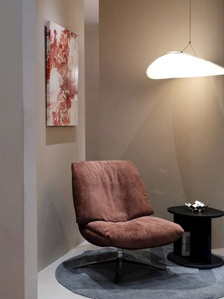 Its silhouette is simple yet striking, combining a sense of lightness with sculptural presence. From the back, the broad, soft