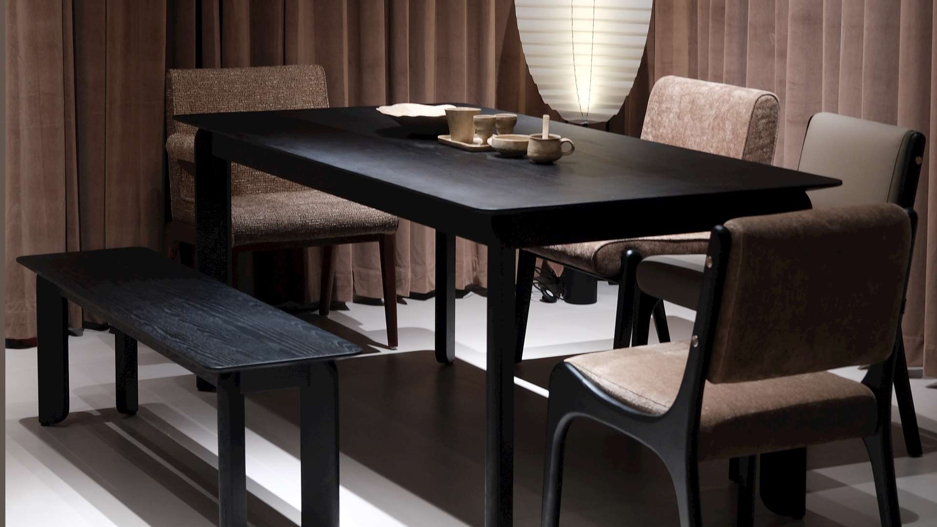 With its flowing curves and warm wood tones, the Swallow works as both a dining table and a writing desk—bringing a quiet