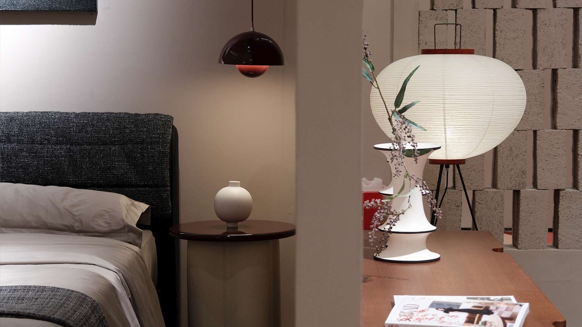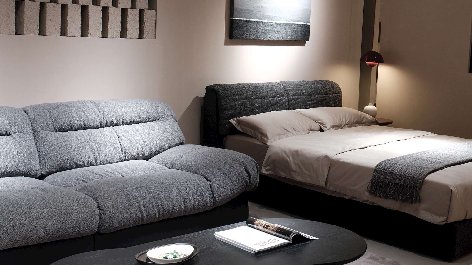 The Pine bed takes inspiration from the upright, layered form of pine trees. Its tall, flowing